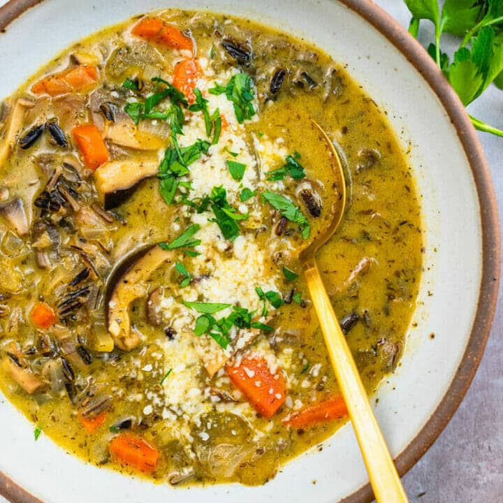 Cremini mushrooms are the perfect pair with earthy wild rice in this creamy soup. Also try Creamy Vegan Mushroom Soup.