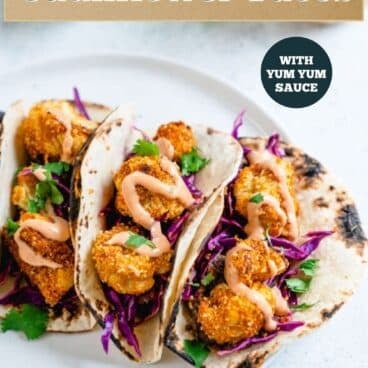 This cauliflower tacos recipe is vegetarian and gluten-free. For vegan, plant-based, and dairy-free, use the vegan Yum Yum Sauce variation or chipotle sauce.