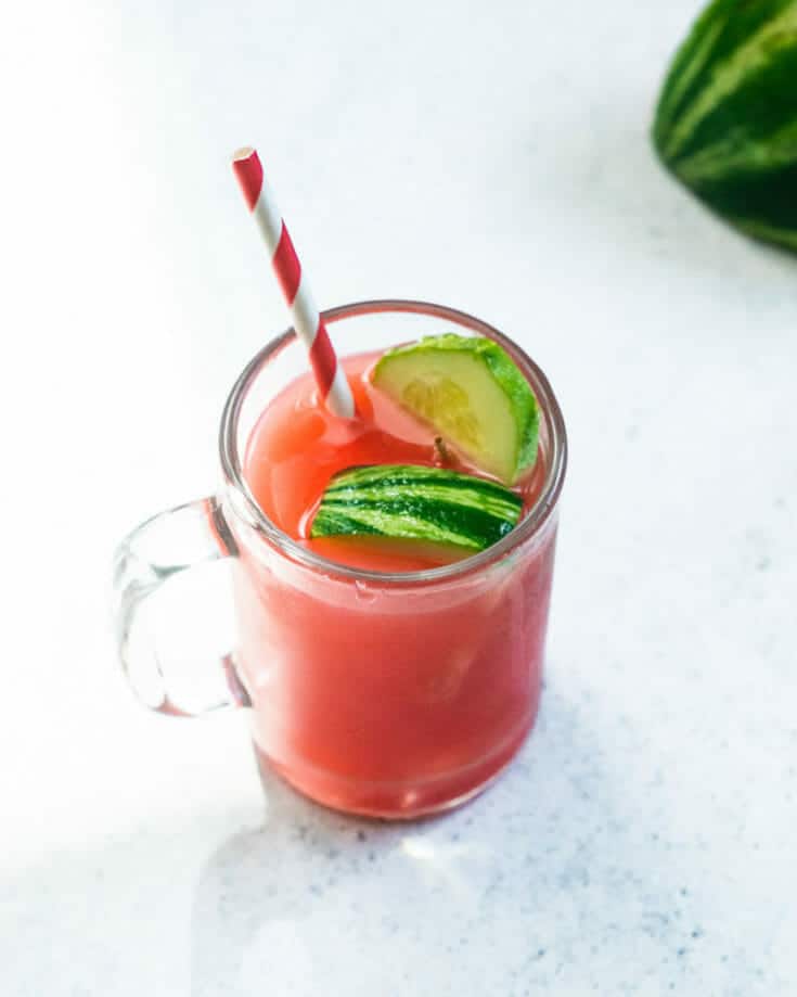 Here’s a cucumber drink that’s absolutely perfect for summer: Cucumber Lemonade! The vegetable adds a cooling, vegetal finish to any drink that’s reminiscent of spa water. Combine that with the zing of the lemon, and it’s the ideal drink for sipping on the patio for a summer barbecue. Spike it if desired by adding ¼ cup vodka or 3 tablespoons gin to 1 cup cucumber lemonade.