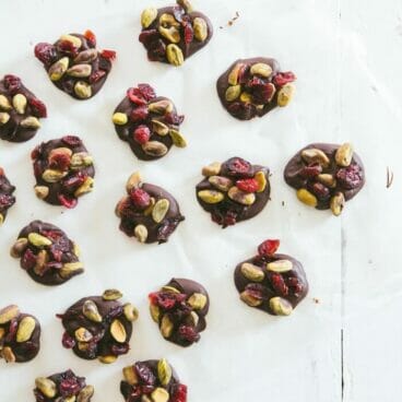 These cranberry pistachio chocolate clusters are a delicious and healthy no bake dessert! They’re easy to make and a total crowd pleaser.