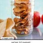 Because the serving size is small, it’s possible you might eat all your dried apples day of. And that’s ok! But if you’re able to keep some around, place them in a covered jar or container. They’ll store in a pantry for 1 week or longer. If you bake them long enough to remove all the moisture, they should stay crisp while stored.