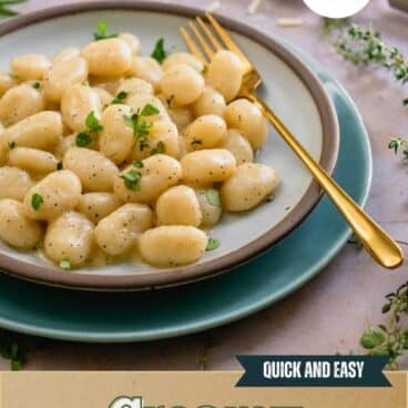 All you need to do to serve this gnocchi sauce is garnish it with a little more Pecorino Romano cheese. If you’d like, you can add chopped fresh herbs like basil, thyme or oregano, but it’s not needed for flavor. Some nights all I want to eat is doughy balls of goodness in a creamy gnocchi sauce!