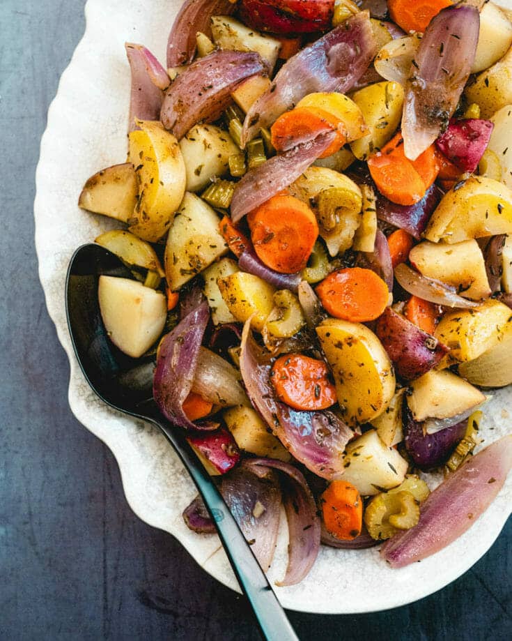 A perfect Dutch oven recipe? Use it for braising! These vegetables taste like they’ve been roasting under a chicken all day long. While they’re plant based and healthy, they’re bursting with flavor that takes cozy to the next level.