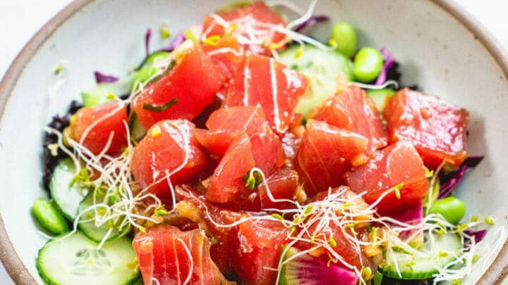 - Japanese style: Try a Sushi Bowl with sushi rice, ahi tuna, and healthy veggies.