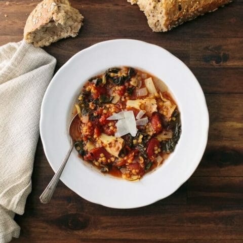 This cozy Tuscan lentil stew with kale, tomatoes and artichokes is a healthy and easy soup recipe that’s full of Italian flavors! It's one of our fan favorites and features dark green leafy Tuscan kale in a tangy broth.