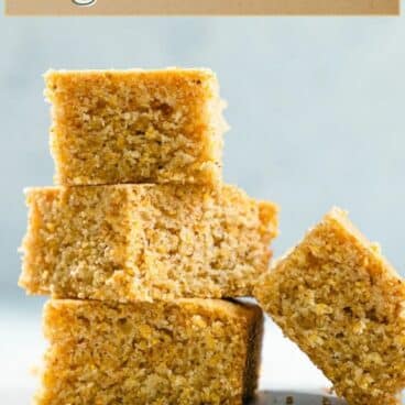 Another great thing about this vegan cornbread is that it saves well! It stays perfectly moist on a cutting board at room temperature with a towel on top for 3 days. It’s also stays well in a sealed container at room temperature for up to 5 days.