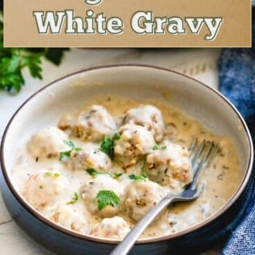 This easy vegetarian gravy recipe uses simple ingredients and comes together in just 15 minutes! It’s creamy and full of flavor. Use it over meatballs, with biscuits and gravy, and more.