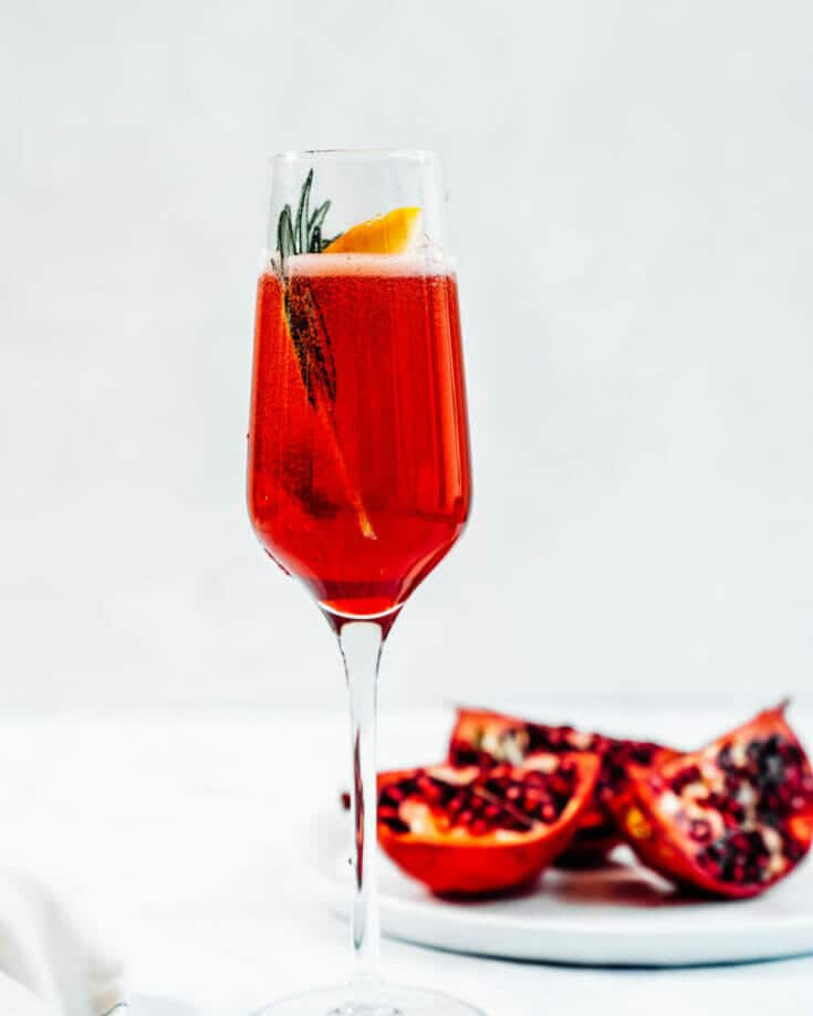 Ingredients: Pomegranate juice, Aperol, Prosecco or Champagne
