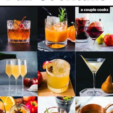 It’s time for fall drinks! Autumn brings with it cozy seasonal flavors, like apples, pears, pumpkin, cranberries, cinnamon, nutmeg, and ginger. I’ve spent years creating cocktail recipes with my husband Alex, and I’ve put together my list of the the best fall cocktails for the season!