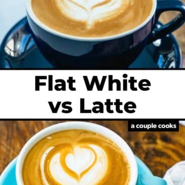 Flat white vs latte: what’s the difference between these popular espresso drinks? Well, a lot and not so much. For starters, they’re made with exactly the same ingredients. Modern coffeehouses have even started to blend the definition of the two so they’ve become very similar. So, the differences are very subtle! Here’s what to know about these two drinks, and how to make them at home.