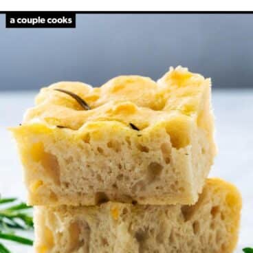If a focaccia recipe is not formulated correctly, it can come out very dense, with little or no holes in the crumb, thin or dry, or fluffy and soft like a roll. As two cookbook authors, we’ve perfected this focaccia bread recipe so that it: