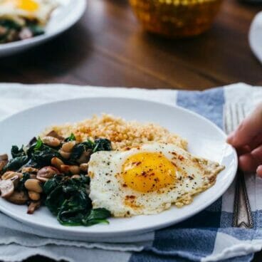 Yay for bulgar! I feel like it’s an under-appreciated grain, and I love the way you dressed it up here with one of my all time favorite toppings: a yummy, runny fried egg AND one of my favorite combos, spinach and mushrooms. What time is lunch? :)