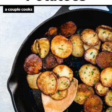 This is my fool-proof method for perfectly seasoned pan fried potatoes every time. They’re cut into rounds without any time wasted on peeling or soaking, and browned until they’re golden. The seasoning works its magic, too, with a blend of smoky, salty, and savory notes.
