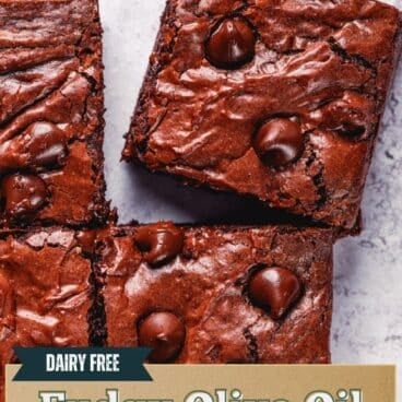 Welcome to your new favorite treat: these fudgy olive oil brownies! These quickly became a fan favorite recipe and are our family’s go-to brownie recipe. They’re rich and chewy: a dairy free brownie filled with peanut butter and olive oil (so it’s Mediterranean diet friendly).