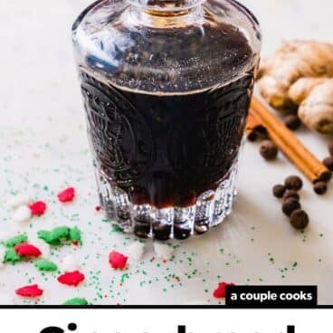 This gingerbread syrup recipe makes ½ cup syrup, which was perfect for us for making small batch Christmas cocktails. But if you’re entertaining, you’ll likely want to make a larger batch. Jump to the recipe below and click the 2x or 3x buttons to easily scale up your recipe.