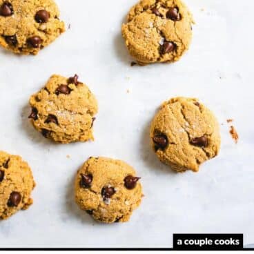 And that’s it: how to make gluten free chocolate chip cookies! We hope you enjoy these: let us know in the comments below. If you’re looking for more vegan and gluten free dessert recipes outside of these cookies, here are a few of our favorites: