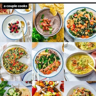 Another make-ahead lunch idea: try a crustless quiche! It’s deliciously savory and hearty, with lots of protein to keep bellies full all morning. Even better: it’s so easy to whip up! No need to bother with a quiche crust: just whisk together the filling and pop it in the oven. It saves well and you can eat it cold, room temp or re-warm it in the microwave.