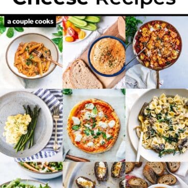 If you’re looking for goat cheese recipes, it’s as simple as adding dollops to your eggs! This recipe for fluffy scrambled eggs is pretty incredible and ultra simple. Cook the eggs over low heat and gently shape them into soft folds, then add goat cheese for tangy flavor. What results is a creamy, gooey, addicting mess. If asparagus is in season, it’s the perfect pairing.