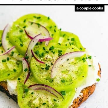 This green tomato recipe is a great appetizer, lunch, or light dinner option – we served it the other night as an assemble-your-own dinner right from the cutting board. What’s your favorite green tomato recipe? Let us know in the comments below!