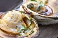 • When the grill is hot, place the clams on it. When the clams are fully opened, after about 5 minutes, pour the Seasonings and put green onion and butter on the clams, and cook until boiling. Carefully remove them from the grill. Try not to spill their juices.