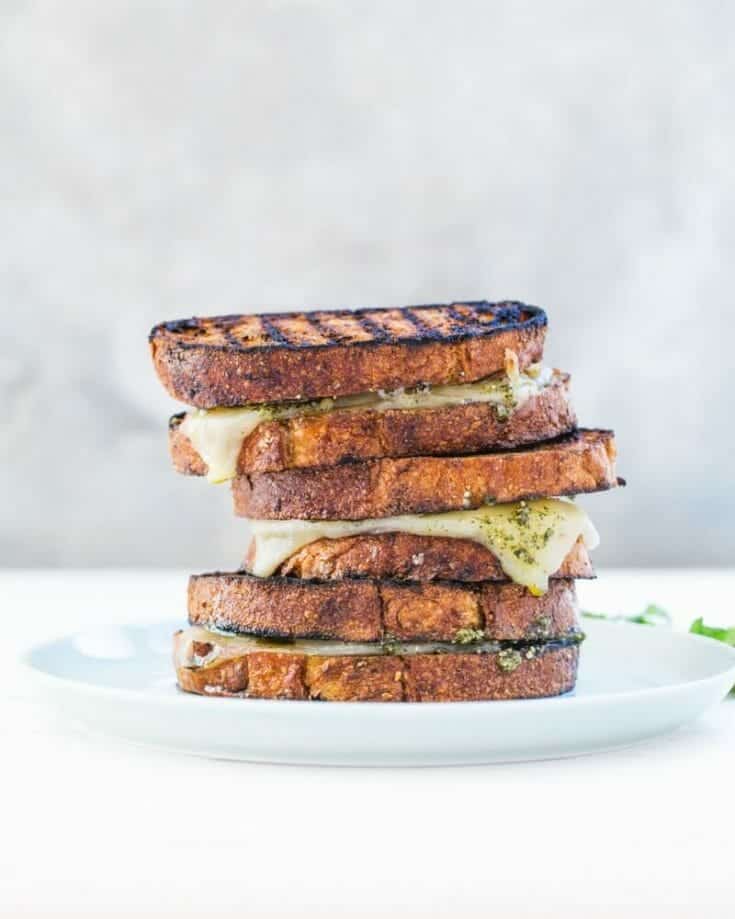 Grilled cheese on the grill? Yes, this grilled cheese is made on a charcoal grill, and once you've tried it you won't want to go back! Fire up the grill, grill the bread on both sides, and then top and grill until the cheese melts. The grill imparts a smoky flavor that’s a fine compliment to the gooey cheese and savory basil pesto.