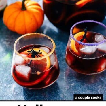 This Halloween sangria is perfect for parties because it makes a big pitcher to share. Try it out, or try a Halloween margarita pitcher if you’re a tequila lover!