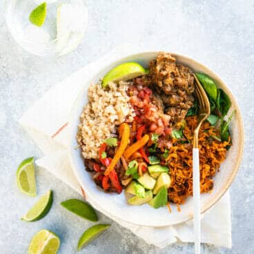 This vegetarian burrito bowl with cauliflower rice is one of our favorite new healthy dinner ideas! Our some of our other top healthy dinner ideas on Fancy Foods Show: