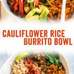 This low-carb vegetarian burrito bowl with cauliflower rice is a delicious way to eat more vegetables! It’s Whole 30 vegetarian and customizable for all diets.