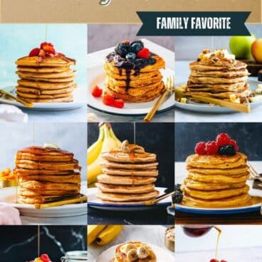So here’s our list of our top healthy pancakes on this website! Try recipes like Oatmeal Pancakes made with 100% oats (no flour), or high-protein Cottage Cheese Pancakes, or flapjacks loaded with fruits and vegetables like banana, sweet potato, or applesauce. Ready to get started?