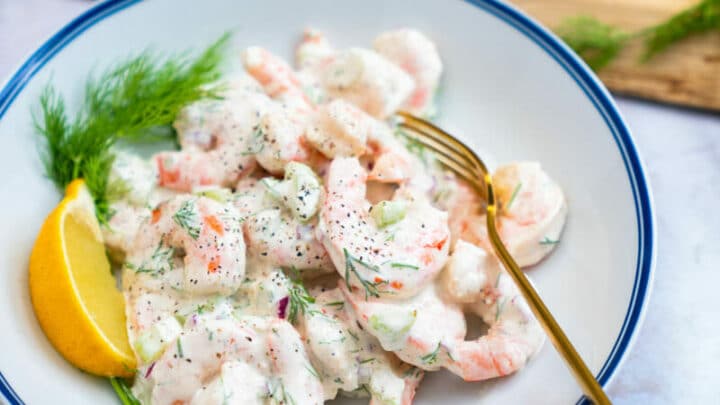 Tender, succulent shrimp tossed in a light dressing with crunchy vegetables. This elegant salad provides lean protein that's perfect for a refreshing yet satisfying lunch.