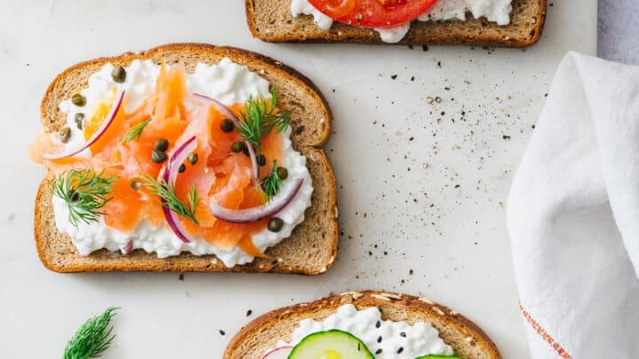 Need a 5 minute high protein lunch? Cottage cheese on toast is an easy lunch idea or snack using this high protein cheese!