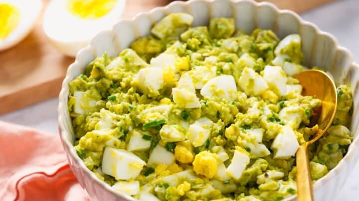 This creamy avocado egg salad is packed with healthy fats and fresh flavor! It’s the perfect lunch idea or protein-packed snack that’s ready in minutes.