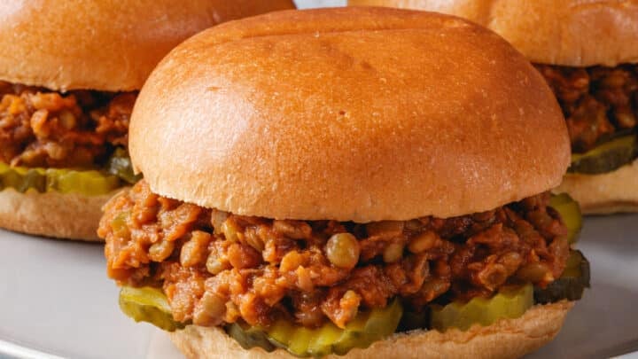 These vegan lentil sloppy joes are deliciously filling plant-based dinner made with lentils, tomatoes, and seasonings! The tangy flavor makes them a crowd-pleaser, and they’re a huge hit at our house. Serve on a bun with pickles for the true sloppy joe experience.
