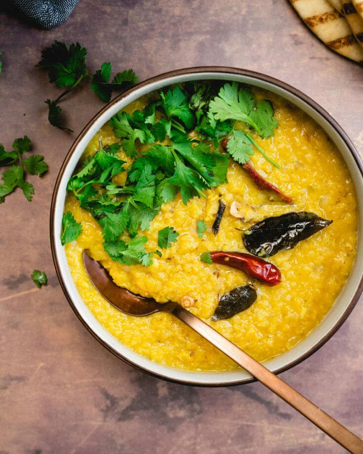 Masoor dal is a spiced Indian lentil dish that’s equal parts flavorful and cozy; serve with rice or naan bread for dipping.