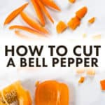 Are you wondering how to cut a bell pepper but not sure the best way? Alex and I use a genius method for cutting bell peppers that doesn’t end up with seeds all over the counter! (Anyone have that issue?) We use this method all the time, like when we make our grilled veggie fajitas or best teriyaki veggie stir fry. Here’s our step by step guide for how to cut a bell pepper, including a video of me cutting bell peppers in our kitchen.
