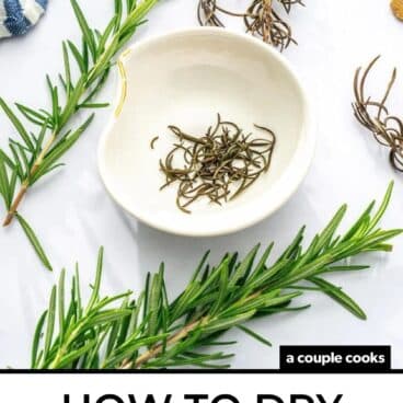 Keep in mind, the flavor and texture of dried rosemary is much different than fresh! It doesn’t work well in recipes like rosemary roasted potatoes or focaccia bread. But it’s great in soups, stews, sauces, pastas and more. Here’s how to dry rosemary: