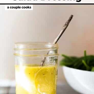 Here’s one thing to note about homemade salad dressing: the amount of oil is critical! Don’t try to get away with less in an attempt to make it lighter. The oil is needed to correctly make the emulsion: that creamy, magical combination of vinegar suspended in oil.