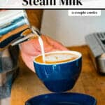 Here’s how to steam milk at home! Use this technique to make homemade espresso drinks like lattes, cappuccinos, and more.