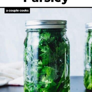 Ever brought home a bunch of parsley, only to discover it’s wilted before you get time to use it? This is a common issue for home cooks, and one that’s happened to us often. But once you discover this trick to how to store fresh parsley, you’ll never be stuck with wilted herbs again! This method makes parsley stay fresh for up 1 week or more. Here’s the secret to fresh herb storage!