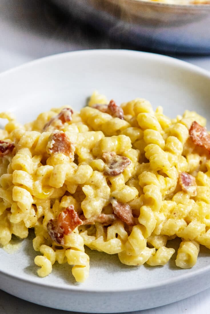 Pasta carbonara is one of the classic pastas of Rome. It's traditionally made with guanciale, a cured pork product that's common in Italy, but you can swap in bacon which is easier to find. via Giada de Laurentiis
