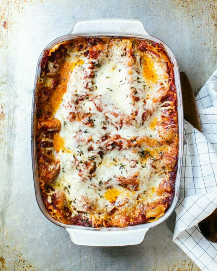 Next up in our kale recipes: this spicy kale lasagna! This is one of the easiest ways to convince people to eat kale, we’ve found. It might not be the healthiest, but this one’s a gateway to other kale recipes! Our spicy kale lasagna uses no-boil noodles to cut down on prep time, and cottage cheese for a twist on the classic ricotta filling. The earthy flavor of the kale is complemented by tangy tomato sauce and spicy red pepper flakes, making this dish hard to resist.
