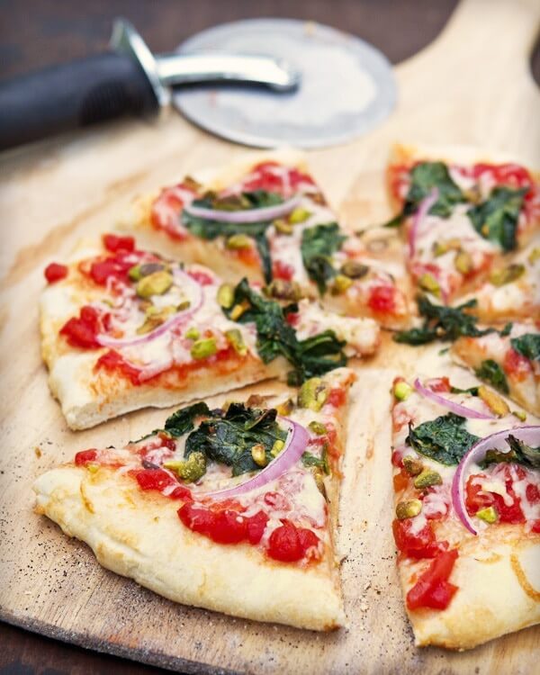 If you’re not convinced by kale lasagna, how about kale pizza? One of our favorite kale recipes, the combination of flavors and textures hit the spot. Sauteed kale, crunchy pistachios, and the zing of red onion fit perfectly with gooey mozzarella and bright pizza sauce.