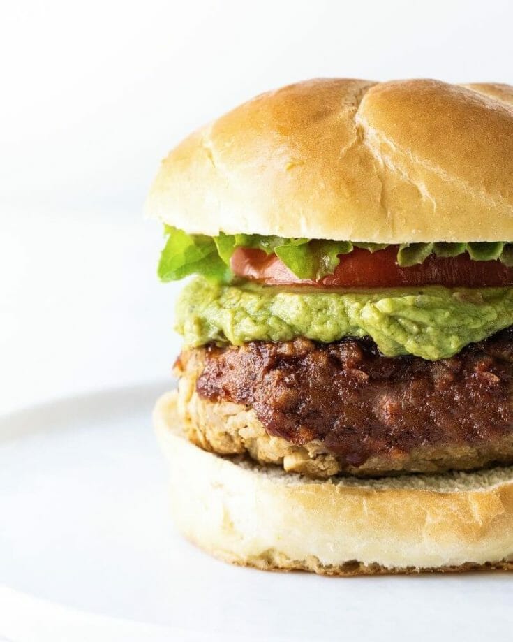 A great way to save time making this delicious veggie burger? Start with leftover rice! This incredibly textured and tasty burger is made with a base of rice and walnuts. It makes for a firm, BBQ-slathered patty that stays together on the grill or baked in the oven!