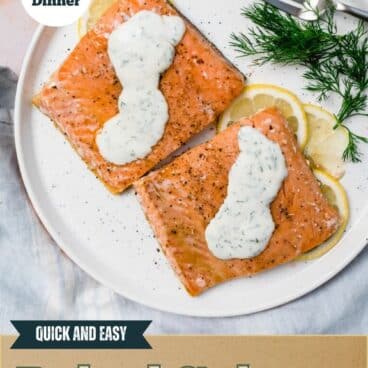 The baked salmon is tender and savory, and doused in a zingy, creamy lemon dill sauce. Every time we serve it to friends and family, it gets rave reviews!