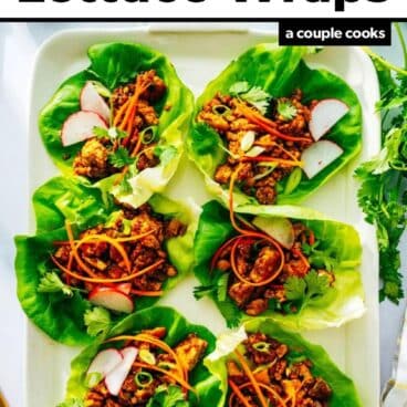 This vegan lettuce wraps recipe is a tasty way to incorporate vegetables into your dinnertime rotation. You can also serve it as an appetizer if you like (if you’re serving a crowd, make sure to double or triple the recipe). Here are a few more veggie-centric dinner ideas: