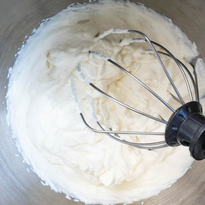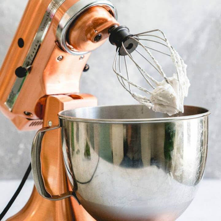 Yes, you can use a stand mixer or KitchenAid for this whipped cream recipe, using the whisk attachment. Follow the instructions below and allow the mixer to whisk to the desired consistency. We often like to whisk by hand because we enjoy the satisfaction of making it with our own two hands. But if you prefer, by all means use your KitchenAid mixer!