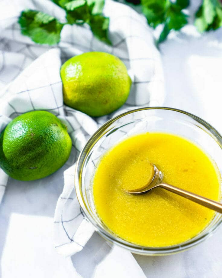 Another great lime recipe? Lime dressing. Every home cook should have a go-to lime vinaigrette! This recipe is ultra versatile, zingy and tangy, and goes with all sorts of salads. It works with all sorts of cuisines, from Latin-style to American. All you need is 5 minutes and 5 ingredients!
