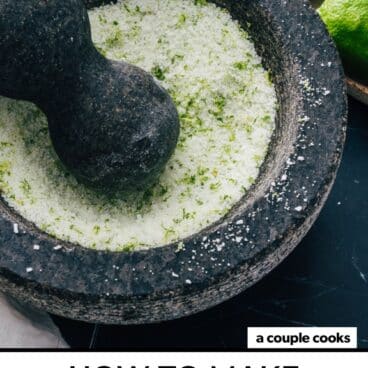 All you need for this recipe are lime zest and salt. Really, there’s nothing more fun than a recipe that has all the ingredients in its name (like miso butter or whiskey lemonade)! You’ll combine them using one of a few methods. Here’s how to make lime salt: