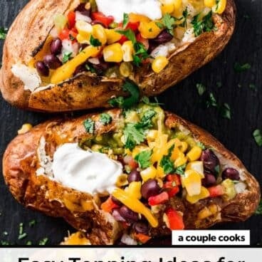 Mix and match baked potato toppings for the best easy dinner, a loaded baked potato! It’s customizable to any diet and eater.