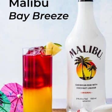 Looking for an easy coconut rum cocktail? Try the Malibu Bay Breeze! This tropical drink could not be easier and it looks stunning in the glass. Layer coconut rum, pineapple and cranberry juice and you’ve got a delicious fruity drink: sweet tart with a tropical finish!